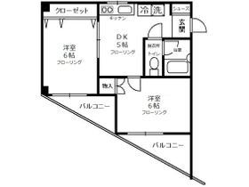 | 間取り | 2DK 西向き | 専有面積 | 38m 2 ( 11.49坪 ) |
