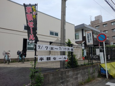 お店というより倉庫で(200坪あるそうです!)、普段は「ここ一般人入っていいの?」という雰囲気ですが、セール中はのぼりが立っていて入りやすい感じです。