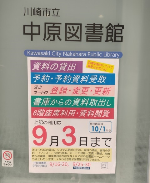 その図書館ですが、9/4~9/30の期間、システム更新のため