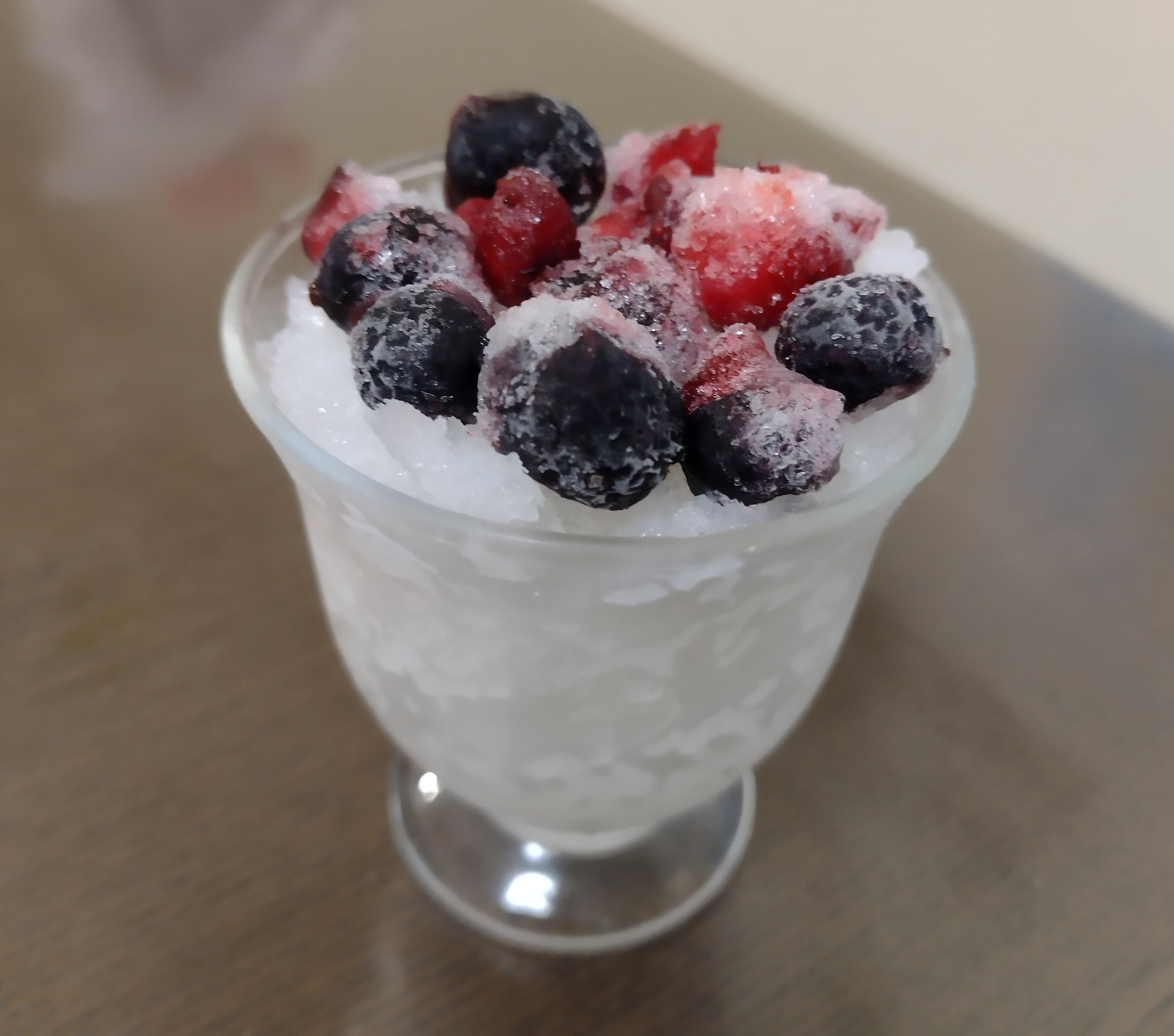 子供と一緒にカルピスを凍らせたシャーベットを作りました。