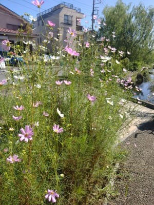 二ヶ領用水路を通ったらコスモスが咲いていました。
