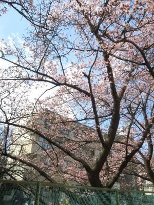 二ヶ領用水路沿いにあり、この桜は毎年開花が早いです。