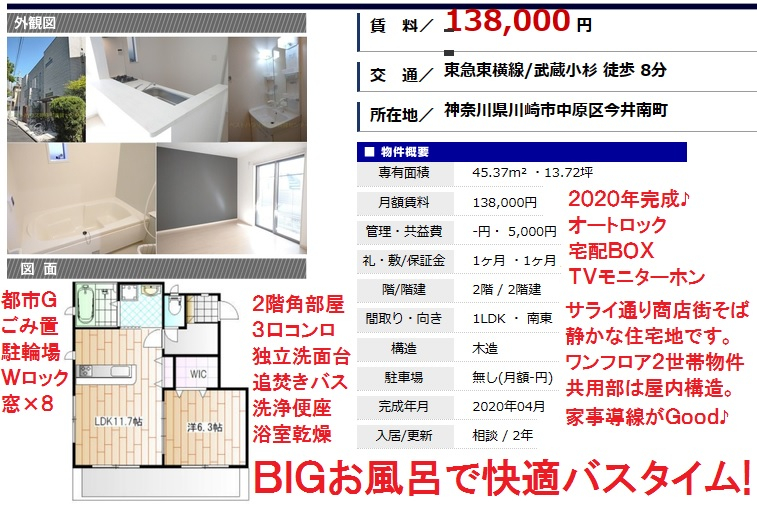 ☆最寄りは武蔵小杉駅。昔ながらの落ち着いた雰囲気漂うエリアです。
