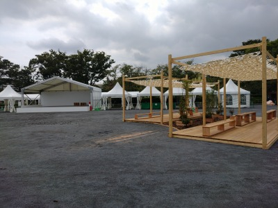 等々力緑地の広場でイベントの準備をしていました。