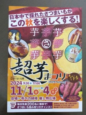 今週末の11/1(金)~4(月)等々力緑地で超芋まつりが開催予定です。