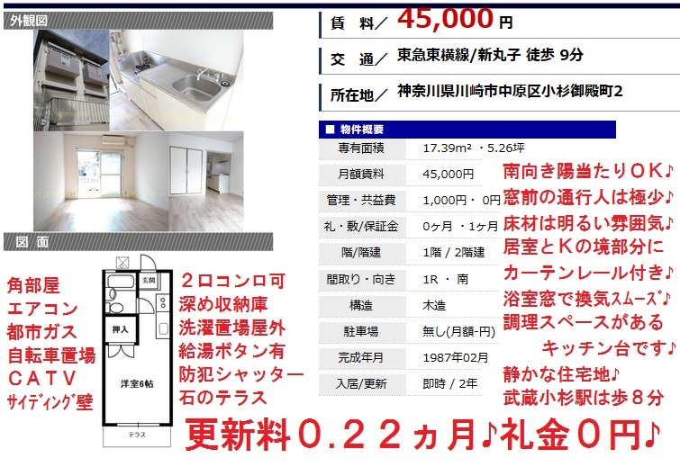☆2年毎の更新時の更新料0円(更新事務手数料20%)♪