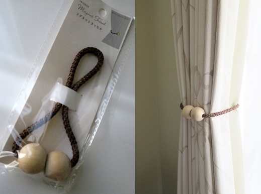 夜カーテンを閉めるときは後ろのレースのカーテンに適当に留めておけます。