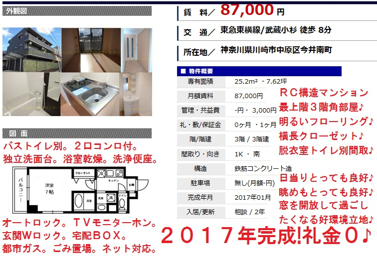 武蔵小杉駅の便利生活を満喫できて、住環境も良い好立地物件です♪
