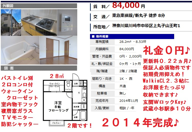 ☆JR横須賀線(湘南新宿ライン)の武蔵小杉駅までは徒歩11分♪