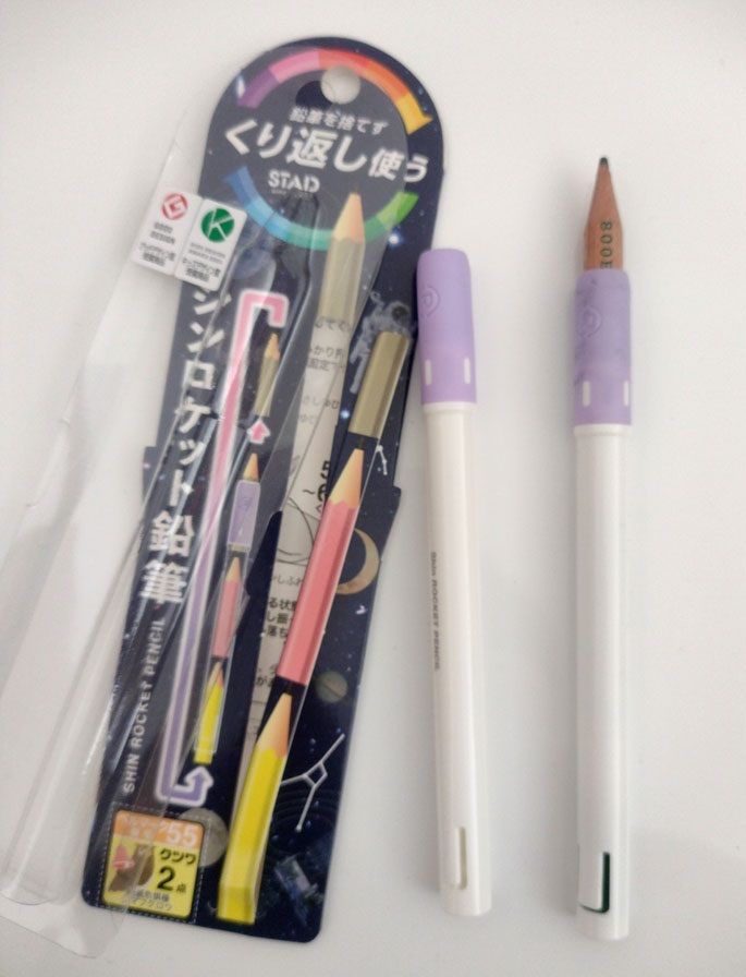 この短くなった鉛筆を、昭和の時代にはやったロケット鉛筆のようにして使うことができるアイディア文房具、その名も「シンロケット鉛筆」がとてもおすすめです。