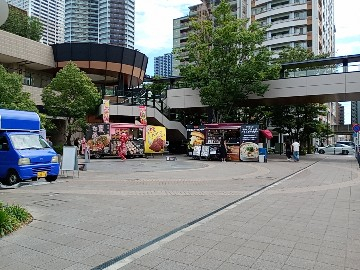 パークシティ武蔵小杉ザガーデンタワーズウエストの噴水エリアにキッチンカーが勢ぞろいしていました。