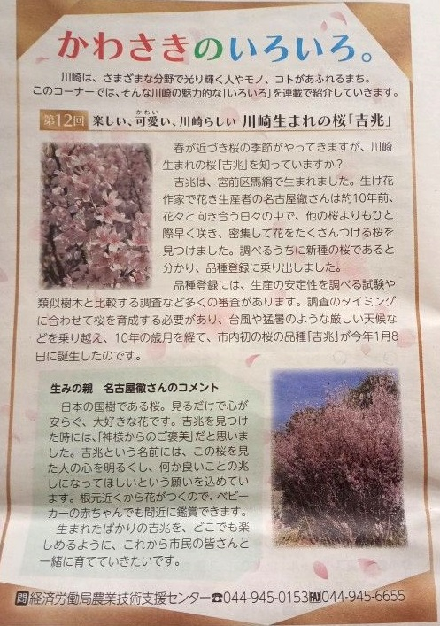 川崎市内初の品種の桜が誕生したそうです♪