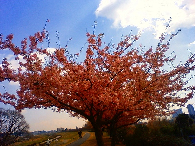 桜のつぼみを多摩川近くや商店街など色々なところで見かけました。