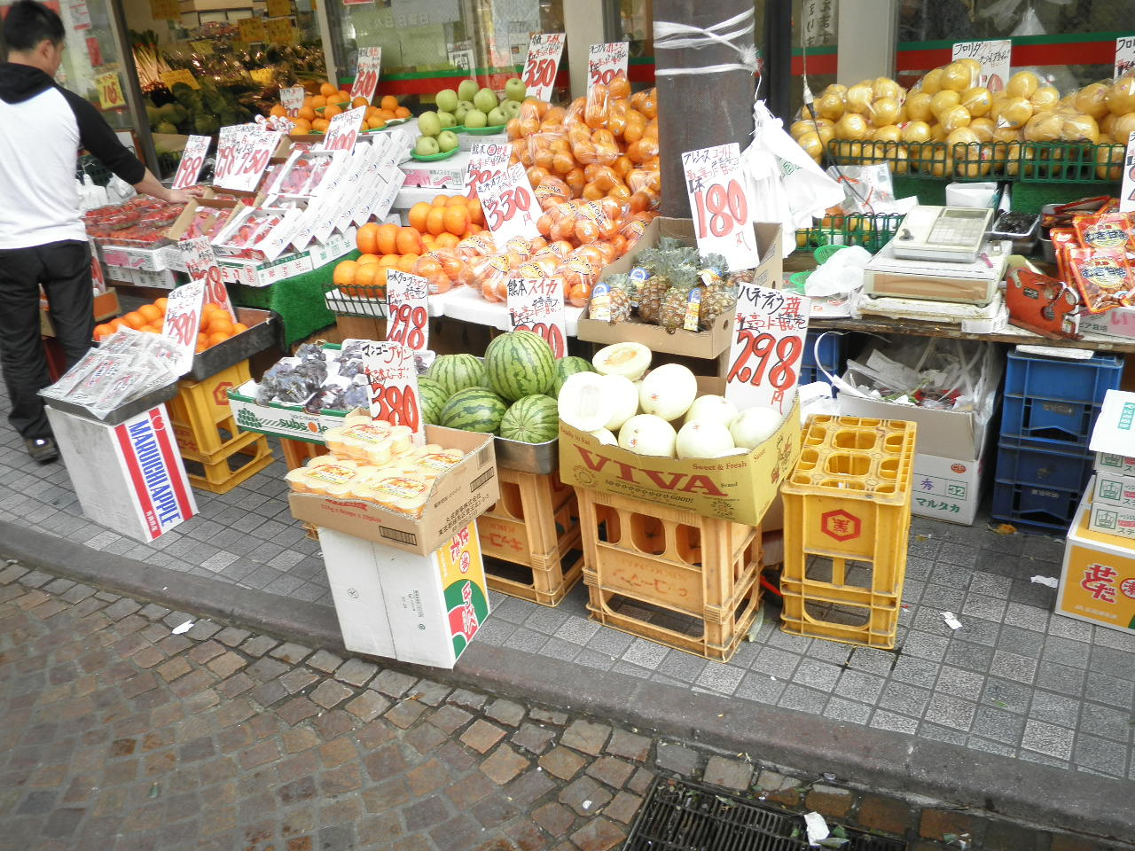 新丸子商店街の八百屋さんでスイカとメロンがもう置いてありました!