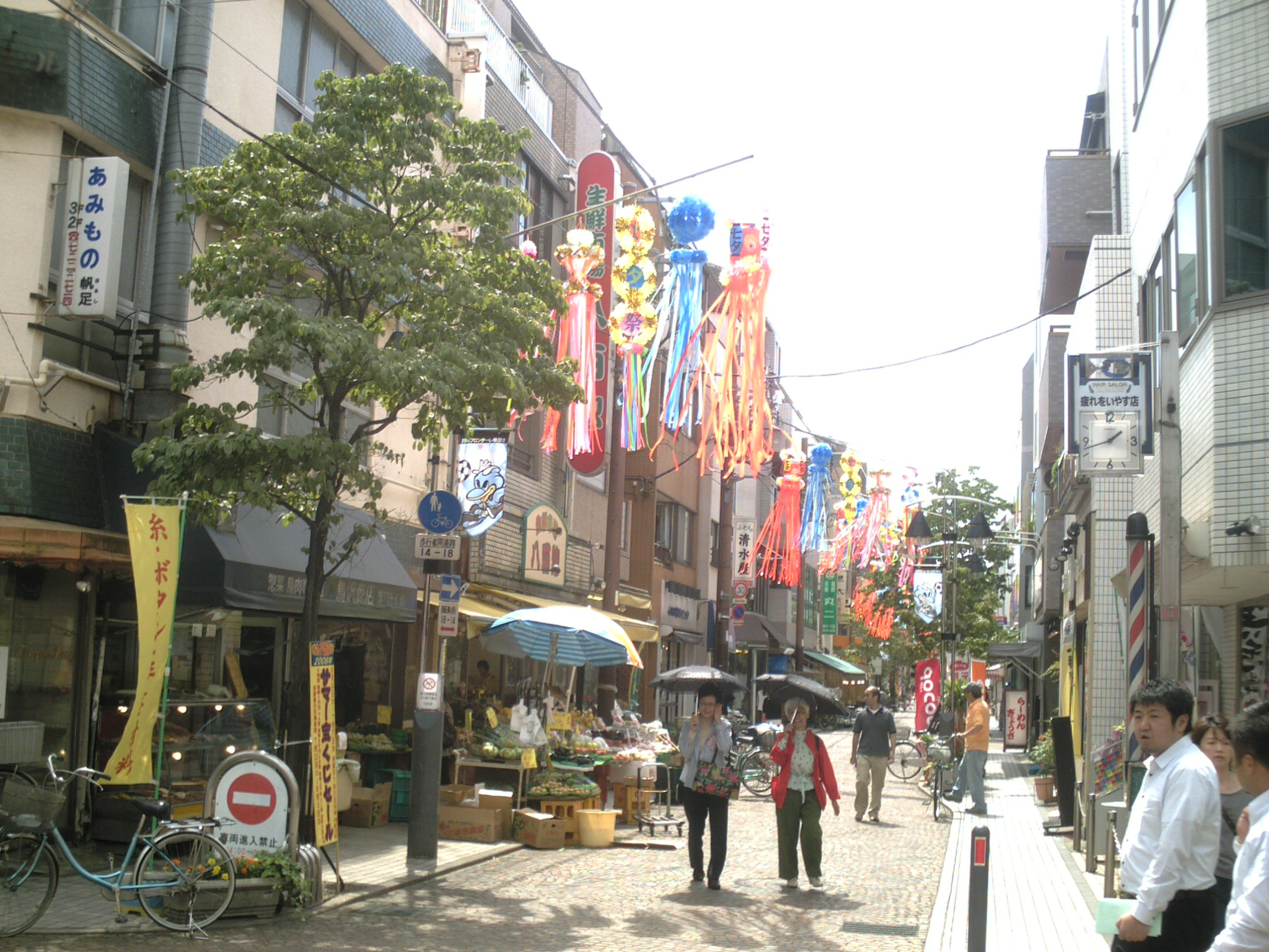 7月7日の七夕に向けて商店街に竹飾りが飾られ始めました。