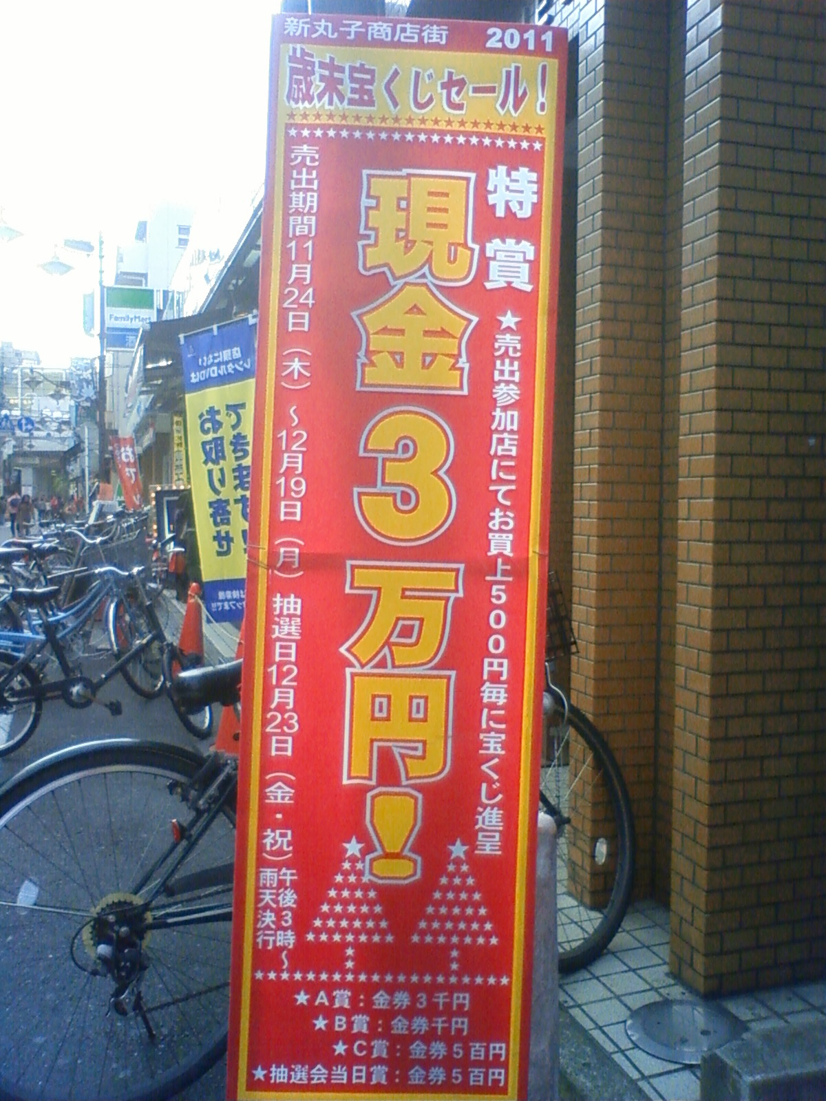 3万円をねらって新丸子商店街でドシドシ買い物しましょう♪