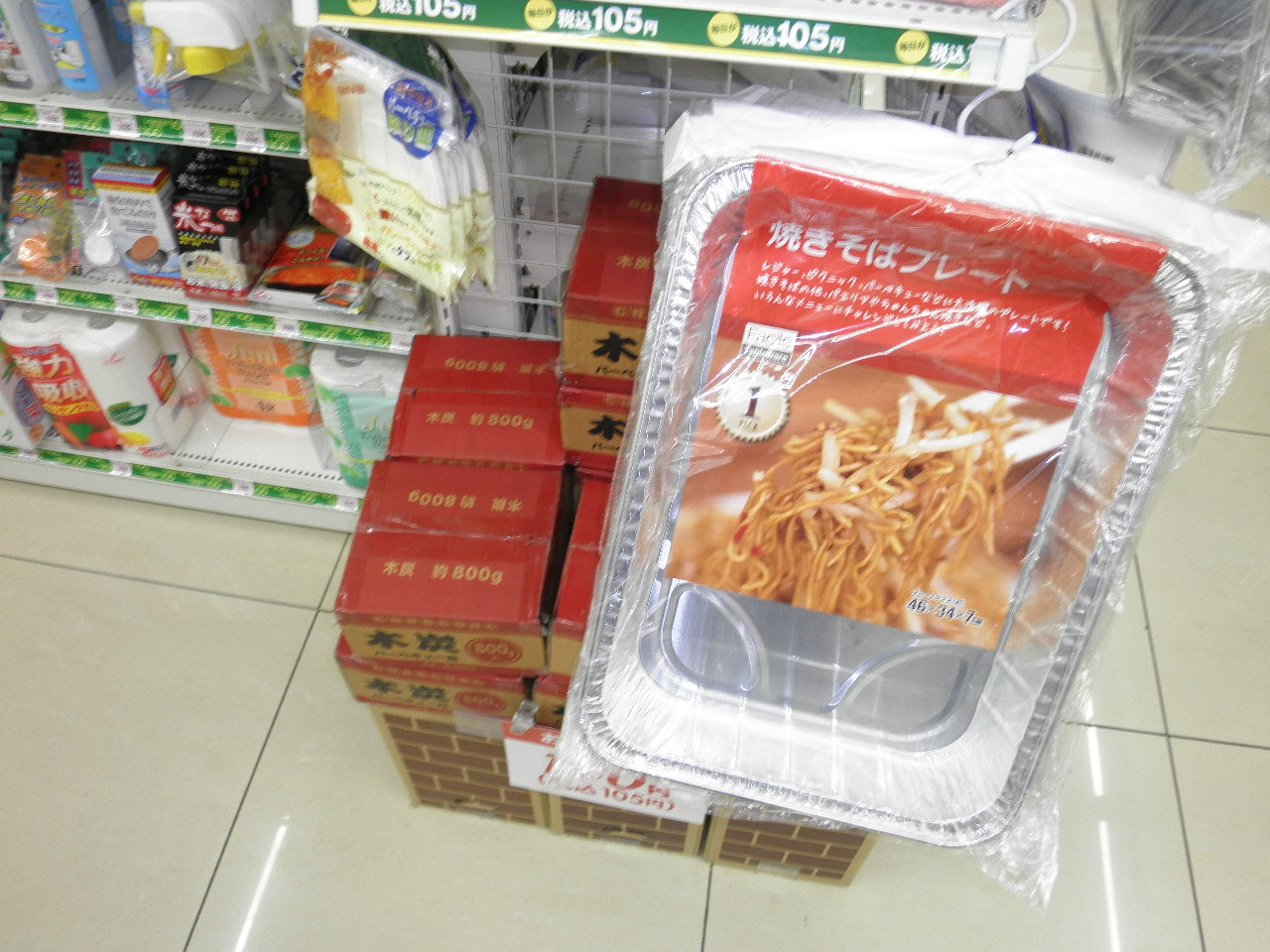 商店街の100円ローソンに夏先取りでバーベキューセットがありました!