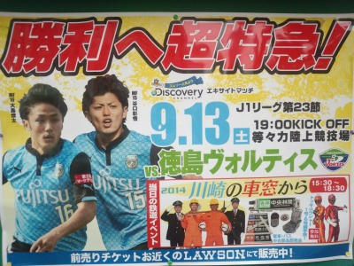 9月13日(土)Jリーグ第23節、等々力陸上競技場で行われる徳島ヴォルティス戦試合開始前(15時30分~18時30分)に川崎の車窓からと題したイベント開催です。