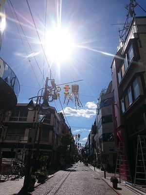 今日は太陽の勢いがすごくて商店街に人がいません。