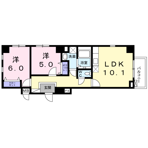 2階角部屋。2LDK・53㎡・管理費込12.7万円。
