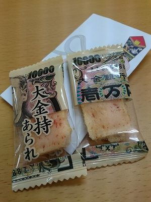 豪華?エビ味の大金持あられ。さっくりサクサク。