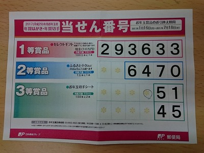 お年玉年賀はがきに当たりがΣ(・□・;)