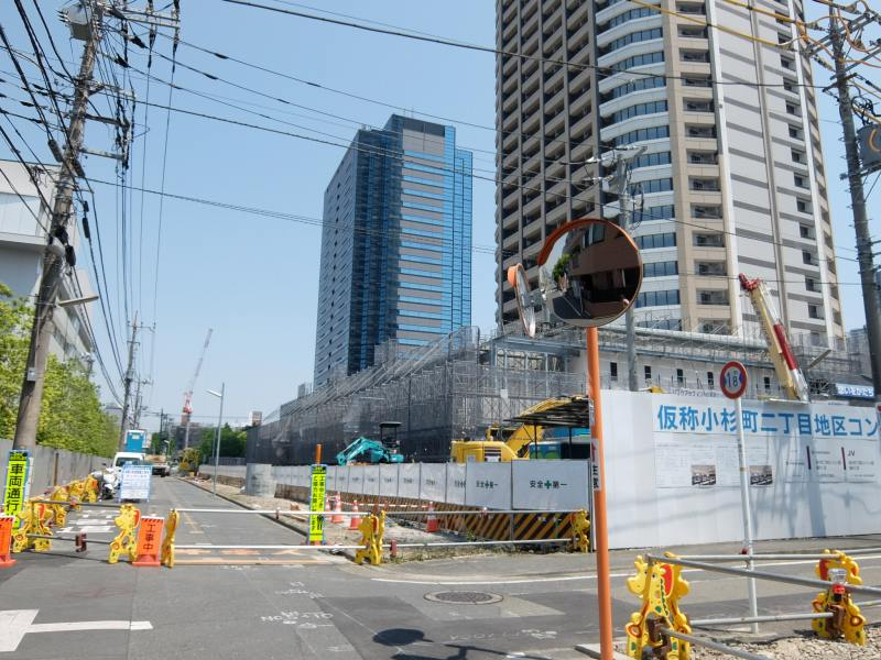 小杉町二丁目の開発に伴い周辺道路の整備も始まりました。