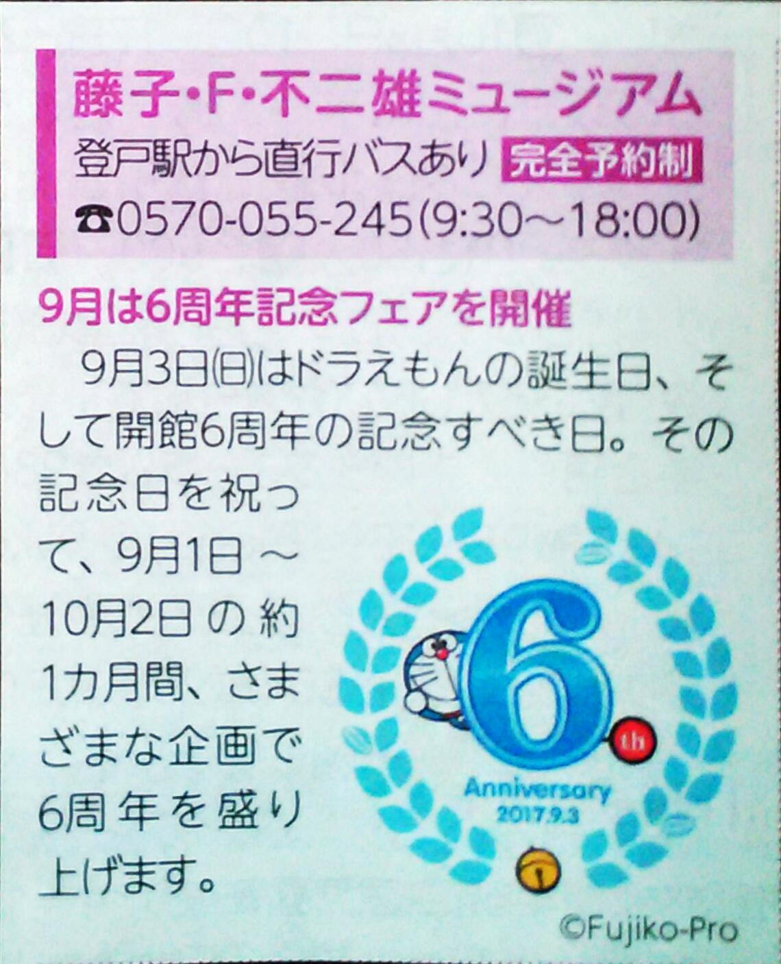 そして藤子・F・不二雄ミュージアムの開館6周年だそうです。