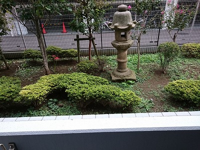 石の灯篭があるマンション。
