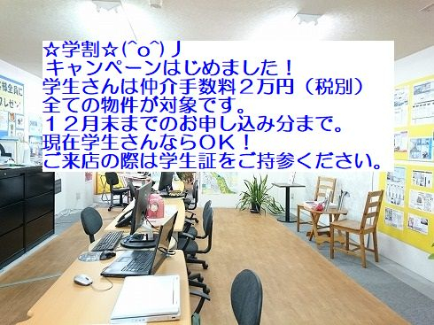 学生さん割引キャンペーンをスタートしました。