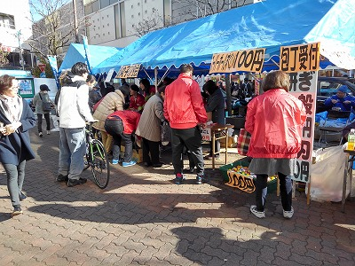 駅前で餅つき。