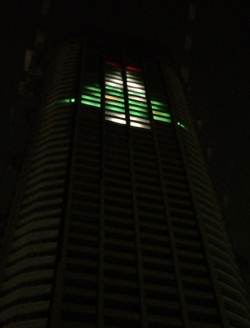 建築中のタワーマンションのツリーがカラーになっていました。