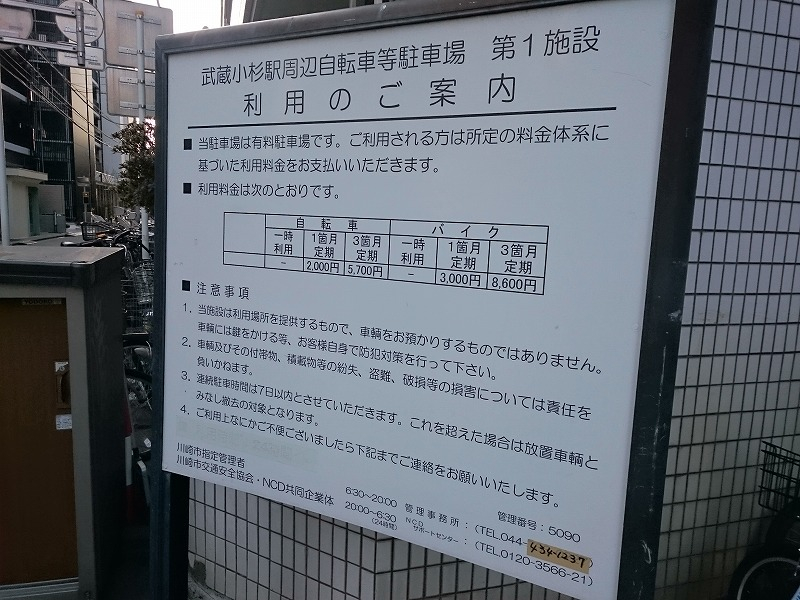 武蔵小杉駅そばの駐輪場料金を見てびっくり!