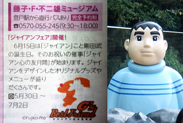 藤子・F・不二雄ミュージアムで、ドラえもんの人気キャラ、ジャイアンの誕生日6月15日を祝って、5月30日~7月2日まで「ジャイアン心の友月間」だそうです!