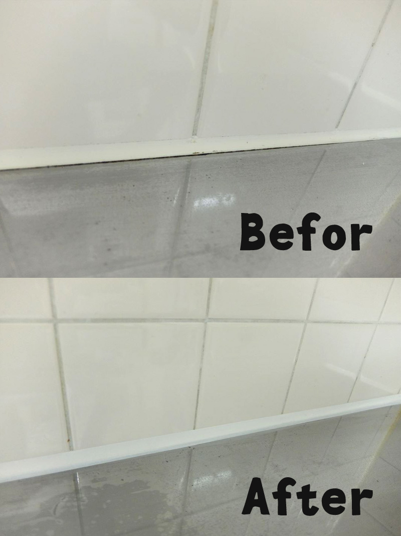 キッチンの隅っこの方…掃除を怠っていたら、壁との隙間の白いやつ(コーキング)のところが黒ずんできました!