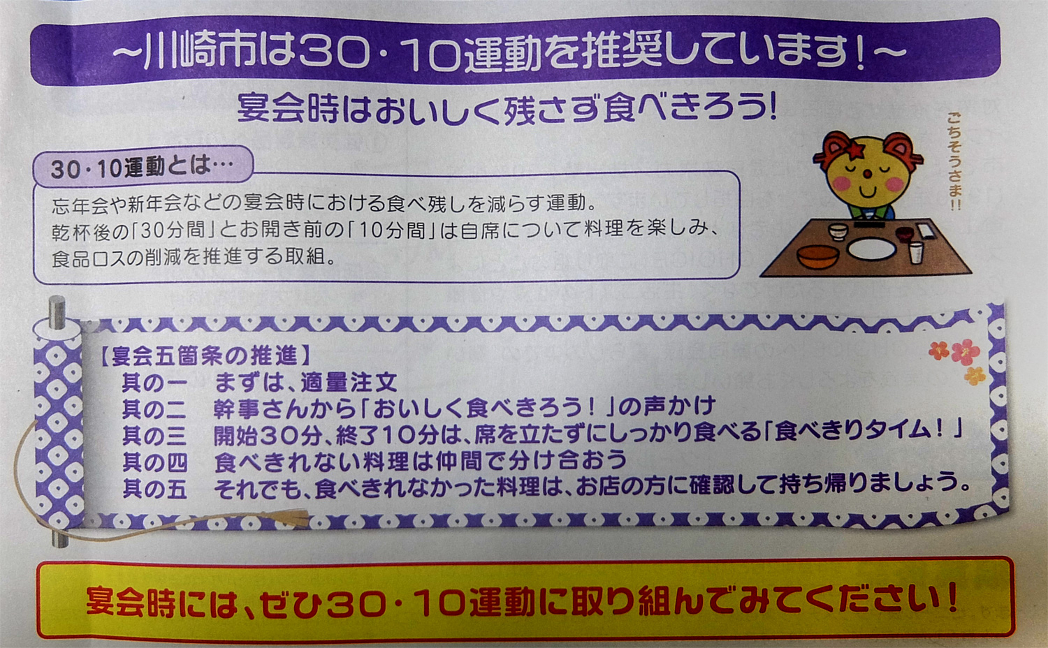 乾杯後の30分間と、お開き前の10分間は料理を楽しみましょう、ということです。