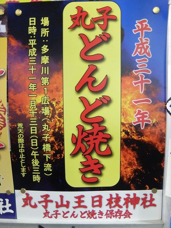明日1月13日(日)午後3時から、丸子橋の下流側の広場にて伝統行事の「どんど焼き」が開催予定です。