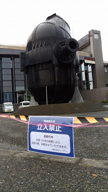先週の台風の影響で川崎市民ミュージアムが休館になっています。
