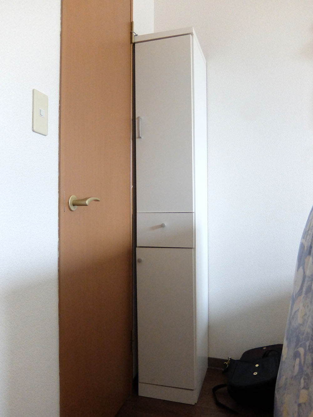寝室のベッドの頭側にあった棚を別室に移動しました。