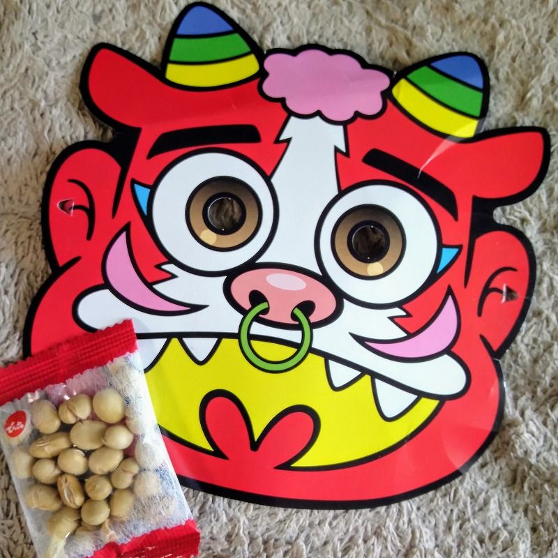 豆を購入したら、レジで鬼のお面をいただきました。