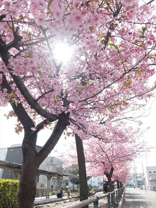 せせらぎ遊歩道の桜に葉っぱが目立つようになりました。