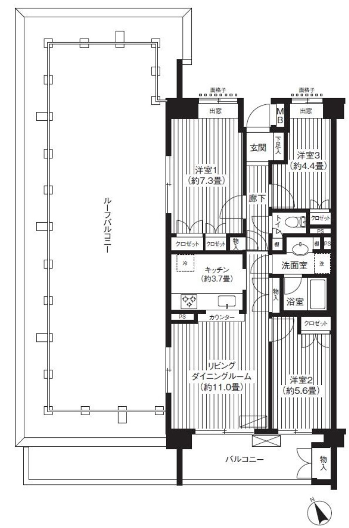 ルーフバルコニー付きのお部屋。