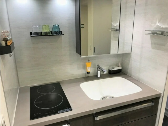慣れないからか少し違和感があるのですが、今需要が減ってきているミニキッチンのワンルームなどに取り入れると、キッチンより洗面台が欲しい!という層の需要に合うかもしれません。
