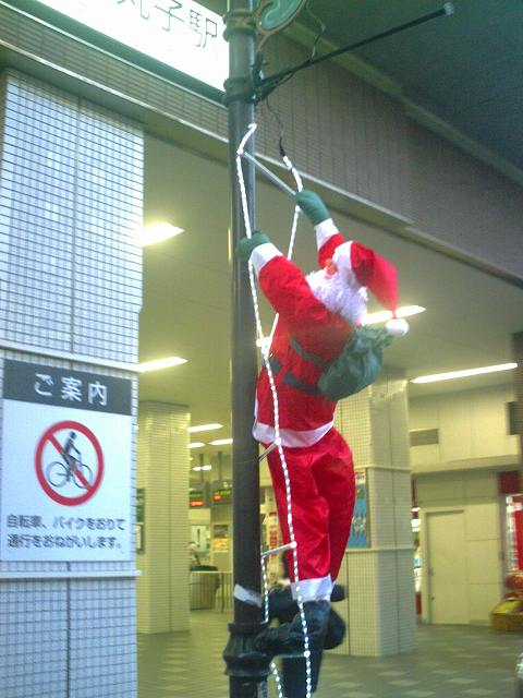 新丸子の駅前に赤い服着たひげのおじさんが現れました。