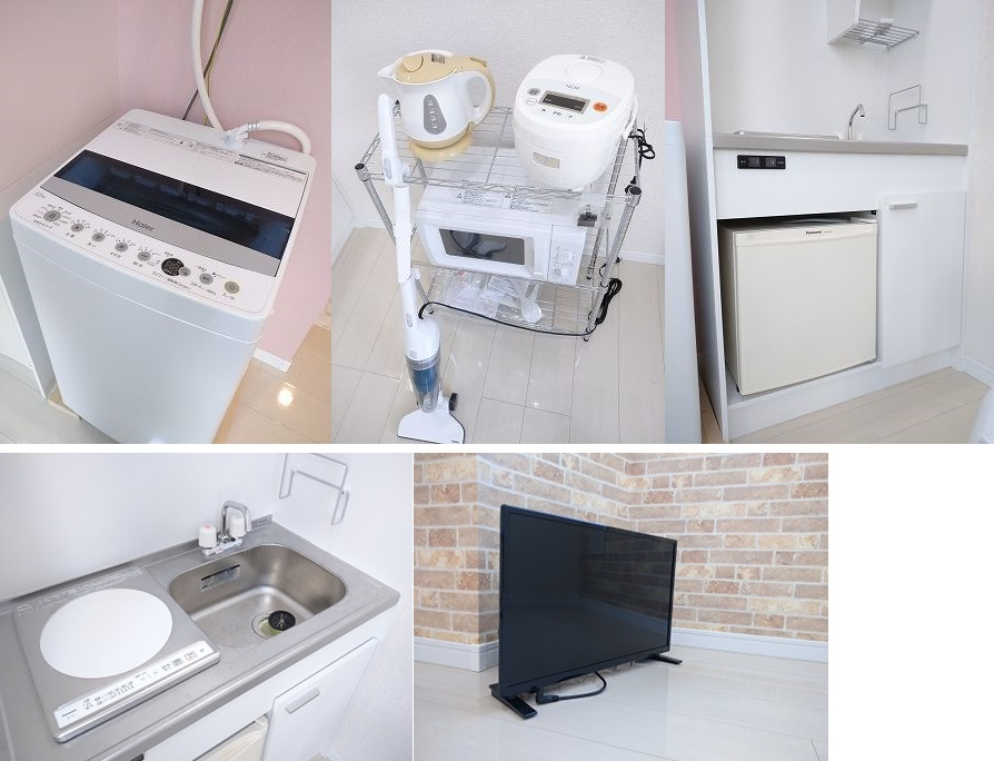 IHコンロ・ミニ冷蔵庫・テレビ・掃除機など。
