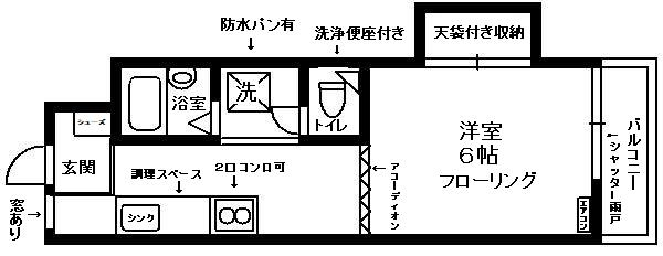フローリングの洋室はガッチリ6帖。ちゃんと6帖あります。