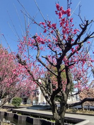 元住吉方面、「あぜの道」ゾーンで今、梅が見頃を迎えようとしています♪