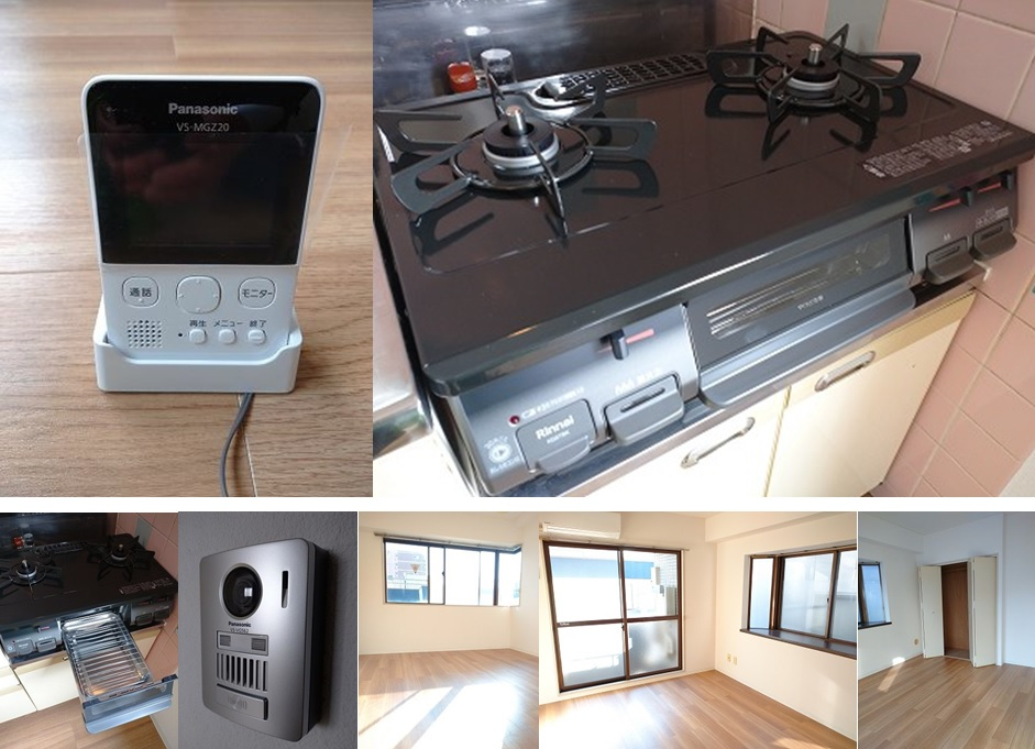 床を全面新品。壁紙新品。コンロ新品。モニタホン新品など。