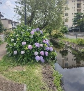 江川せせらぎ遊歩道のアジサイが見頃を迎えていました。