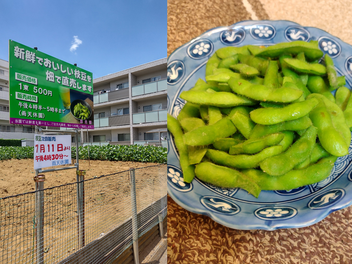 先日見つけた武蔵中原の畑直売の枝豆販売。